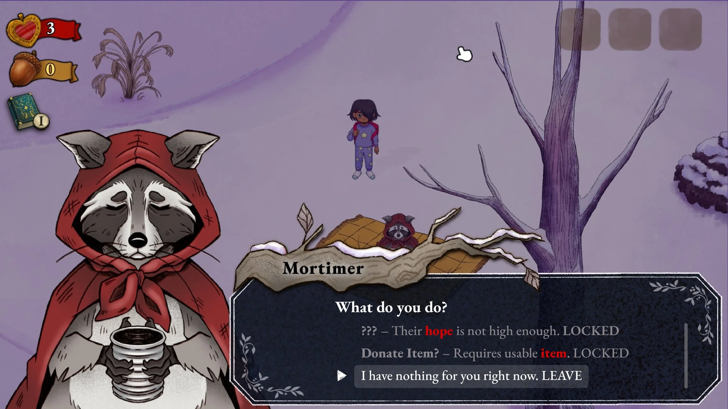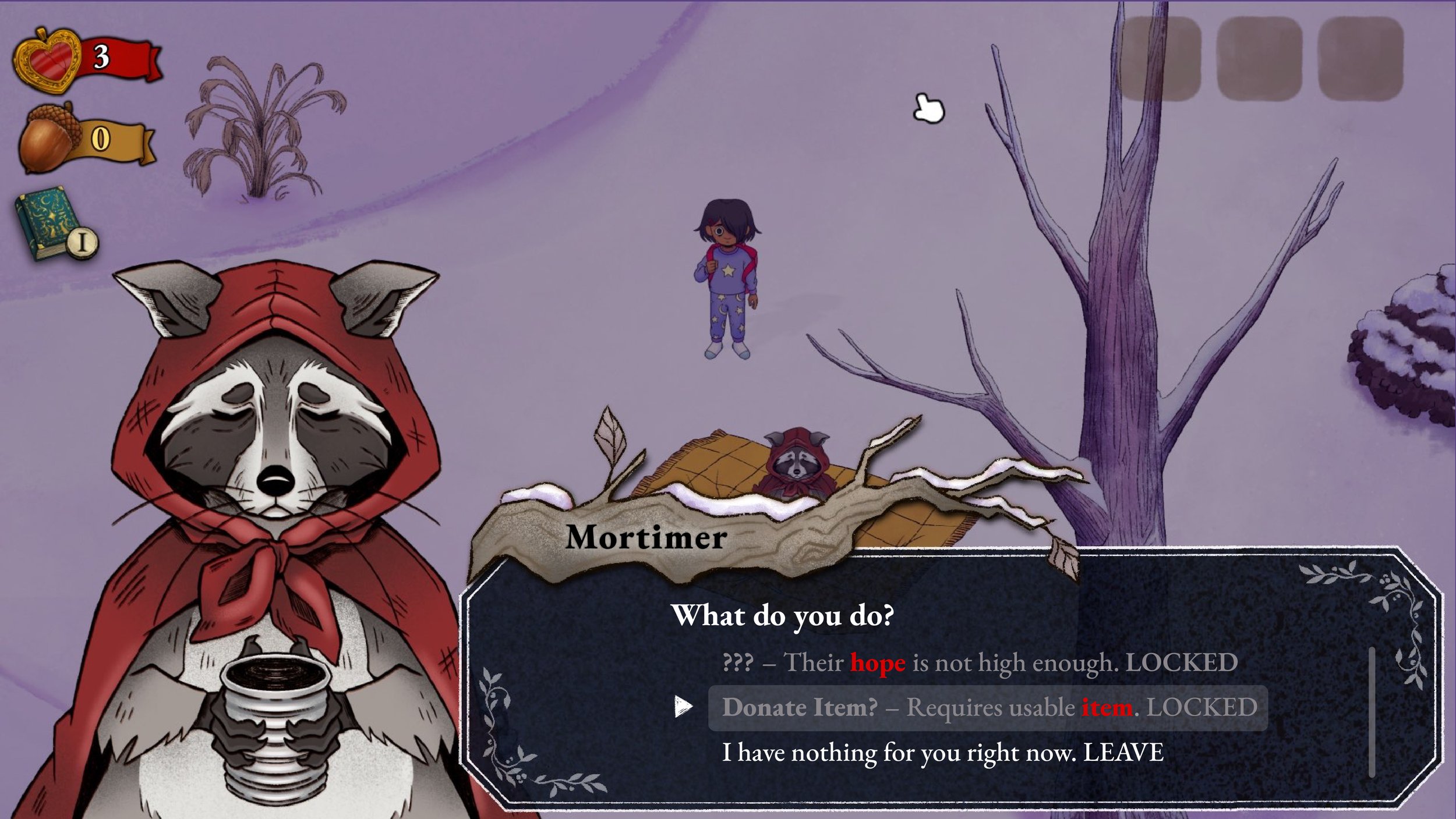 Dream Hollow is a cozy-horror narrative adventure that combines all our favorite aspects of point-and-clicks, visual novels, and RPGs while incorporating minor roguelike elements and resource management.